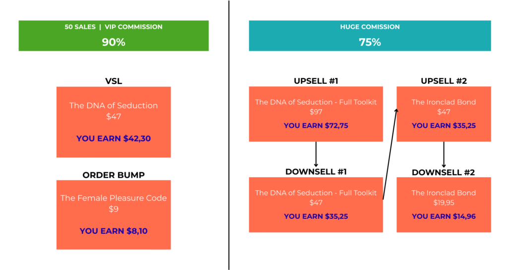 VIP Commission (after 50 sales): 90% on the Front-End + Order Bump, and you keep the massive 75% commission on all upsells. This is one of the most generous payout structures on the network.